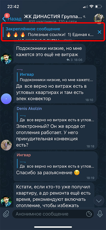 закрепленное сообщение